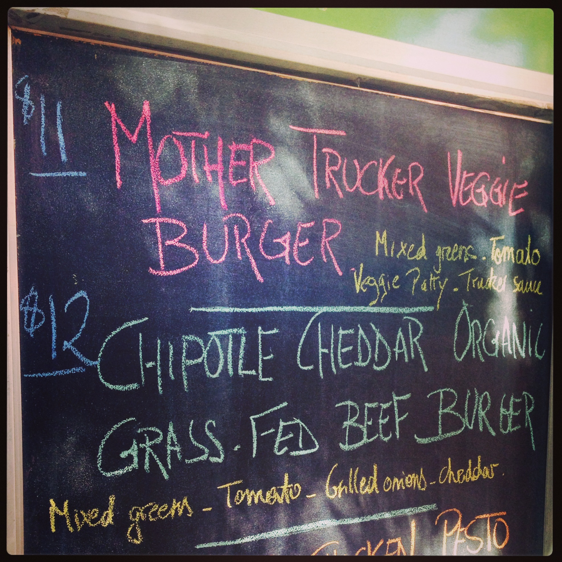 “On days where we have run out of the vegan bun it is served on an artisanal bun which is listed on printed menus on the truck and it is the customer’s choice if they wish to sans the bun and go with the bed of kale to ensure their meal is vegan.” First of all, sans is not a verb. I think she sansed an education. Second of all, why should I have to change anything to make an item called “vegan burger” vegan? And third, the menu board on the truck describes it only as “Mother Trucker Vegan Burger” and doesn’t say anything about the bun, and neither does the printed menu description from the website: