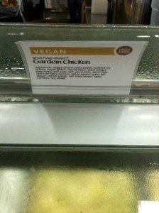 You see it turned out that both stores DID have Beyond Meat. Only not the day of the rollout. They had it for the previous two weeks. But again, NOT on the day of the rollout. Finally, the helpful team member had an inkling where I might be able to find it — he thought there might be some left over from the previous day at the taco bar. And he was right! There under the tag “Vegan Chicken in Tomatillo Sauce” was some Beyond Meat, and it was as good as the steam table concoction was bad.